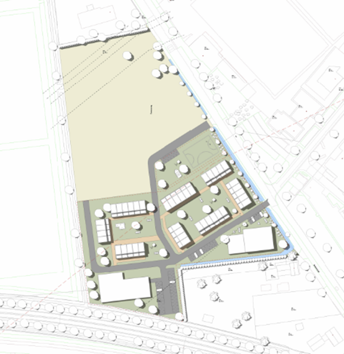 - Er komt ook een speelveld voor collectief gebruik tussen de asielopvanglocatie en de wooneenheden voor andere bewoners.
